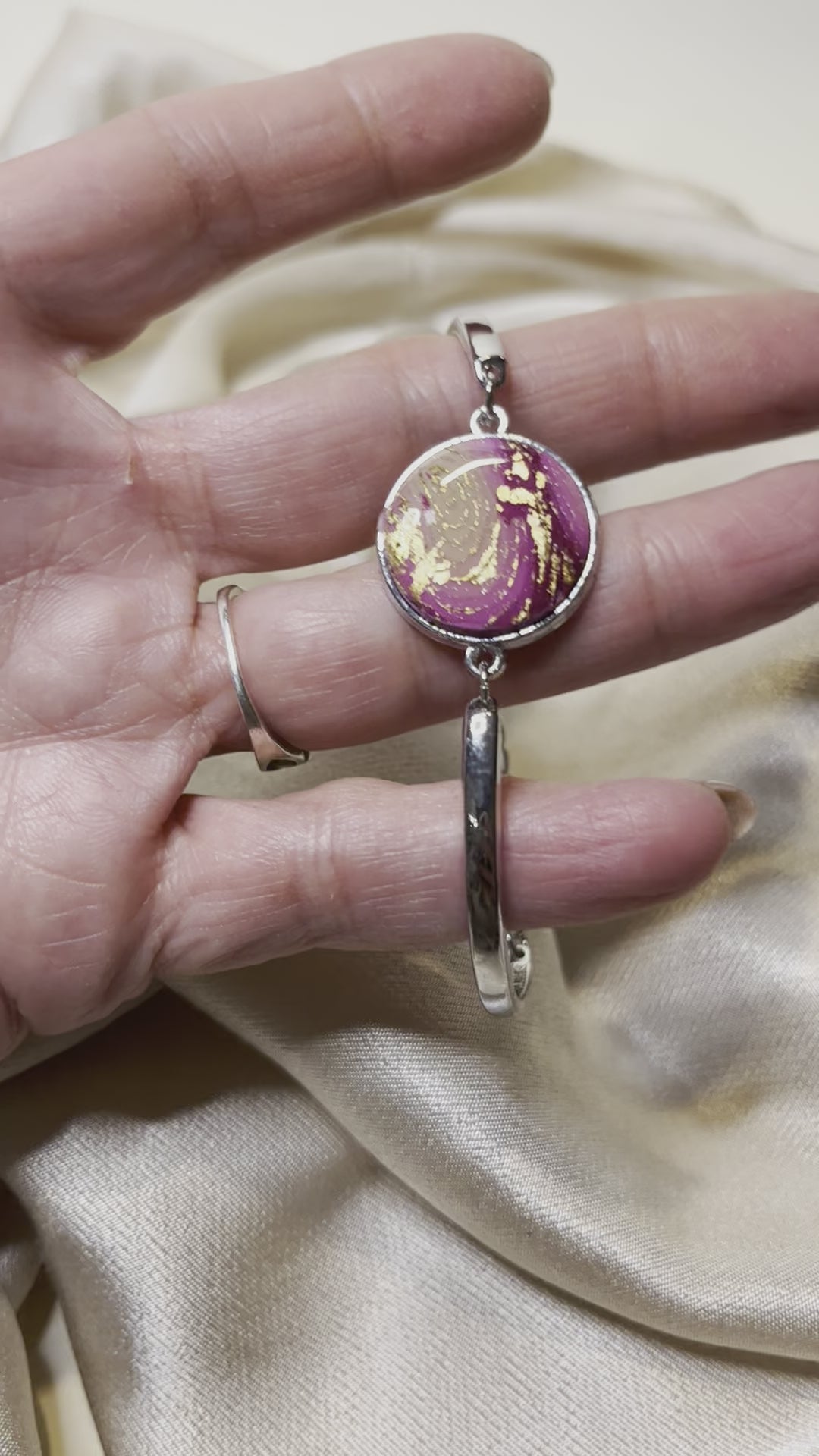 De diseño exclusivo, este Conjunto Fucsia Infinito se compone de una mezcla de colores rosa fucsia con pan de oro, moderno y actual. Creado con arcilla polimérica colorida, acero inoxidable y sellado con resina, su elegancia y resistencia es impresionante. De la mejor calidad, este Conjunto es la última tendencia para esta temporada.