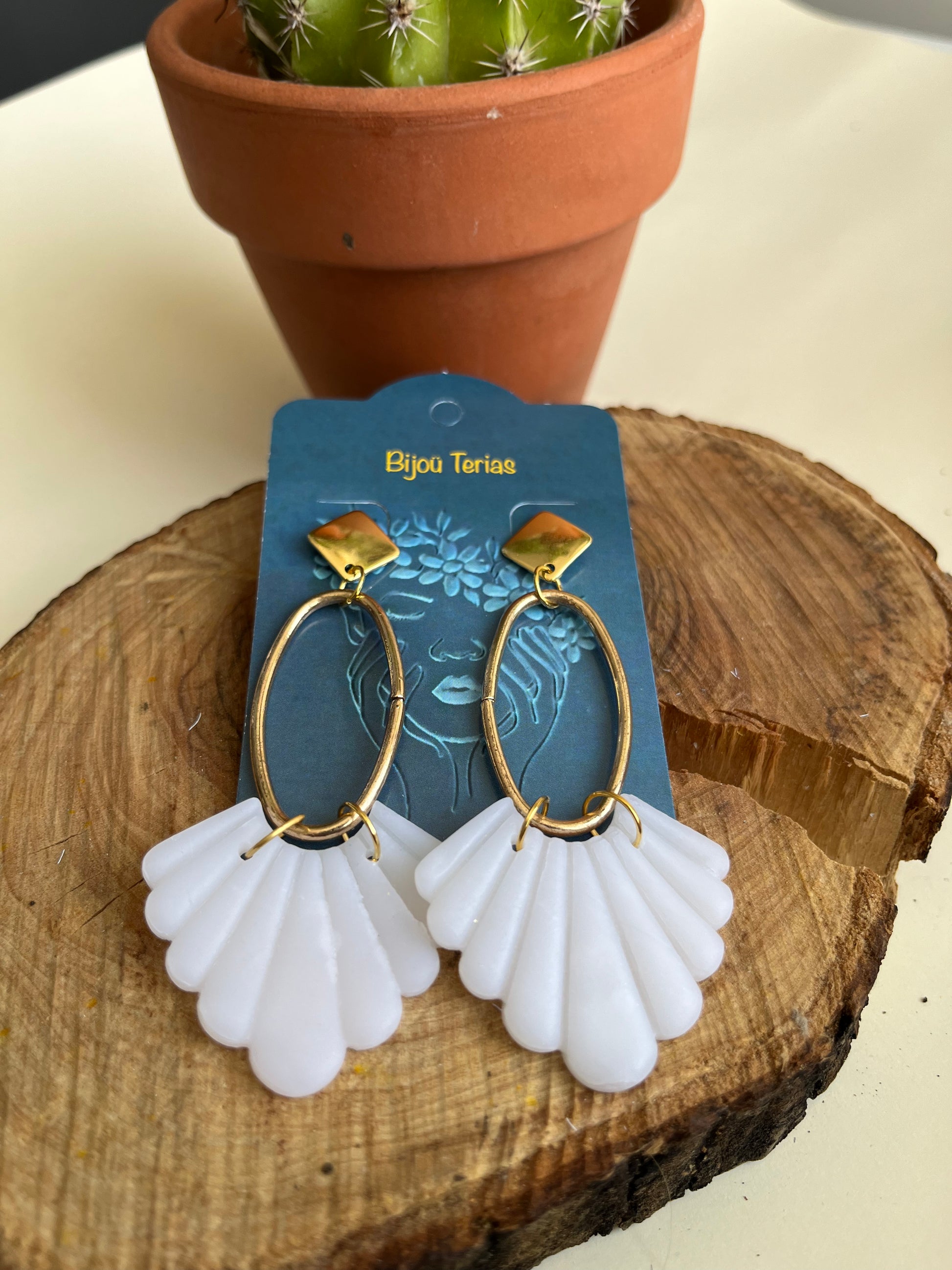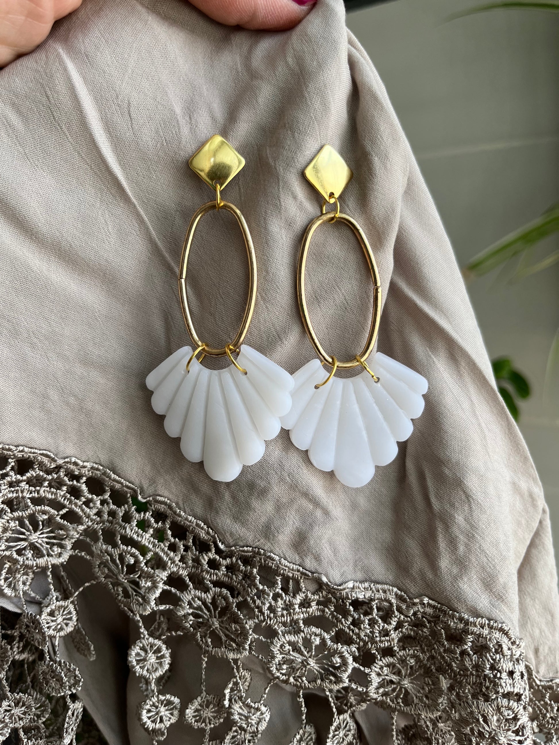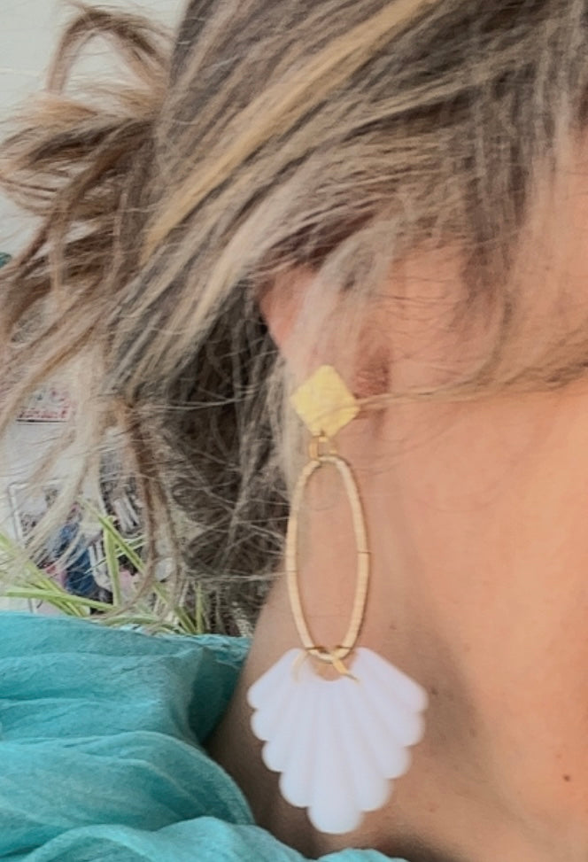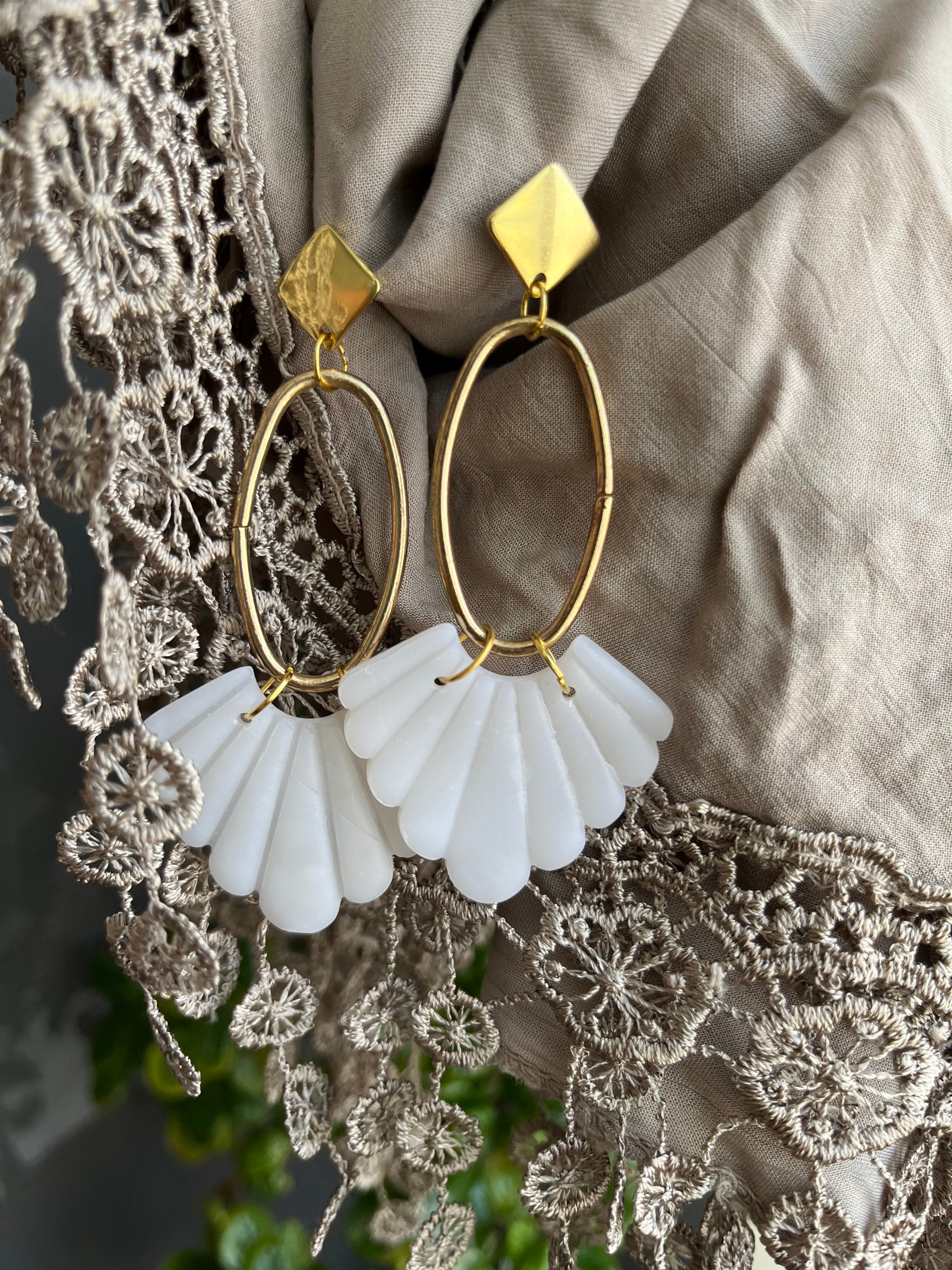 Pendiente Abanico Blanco Translúcido