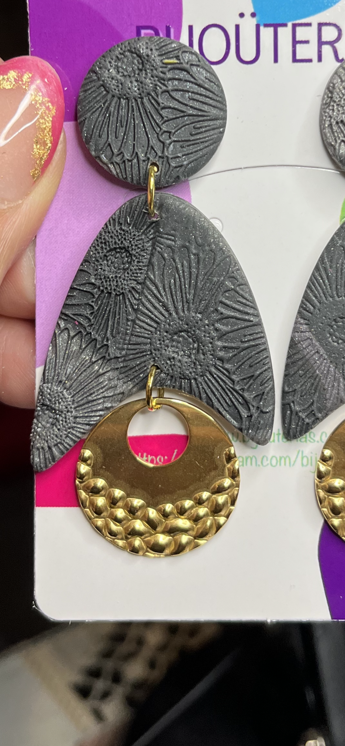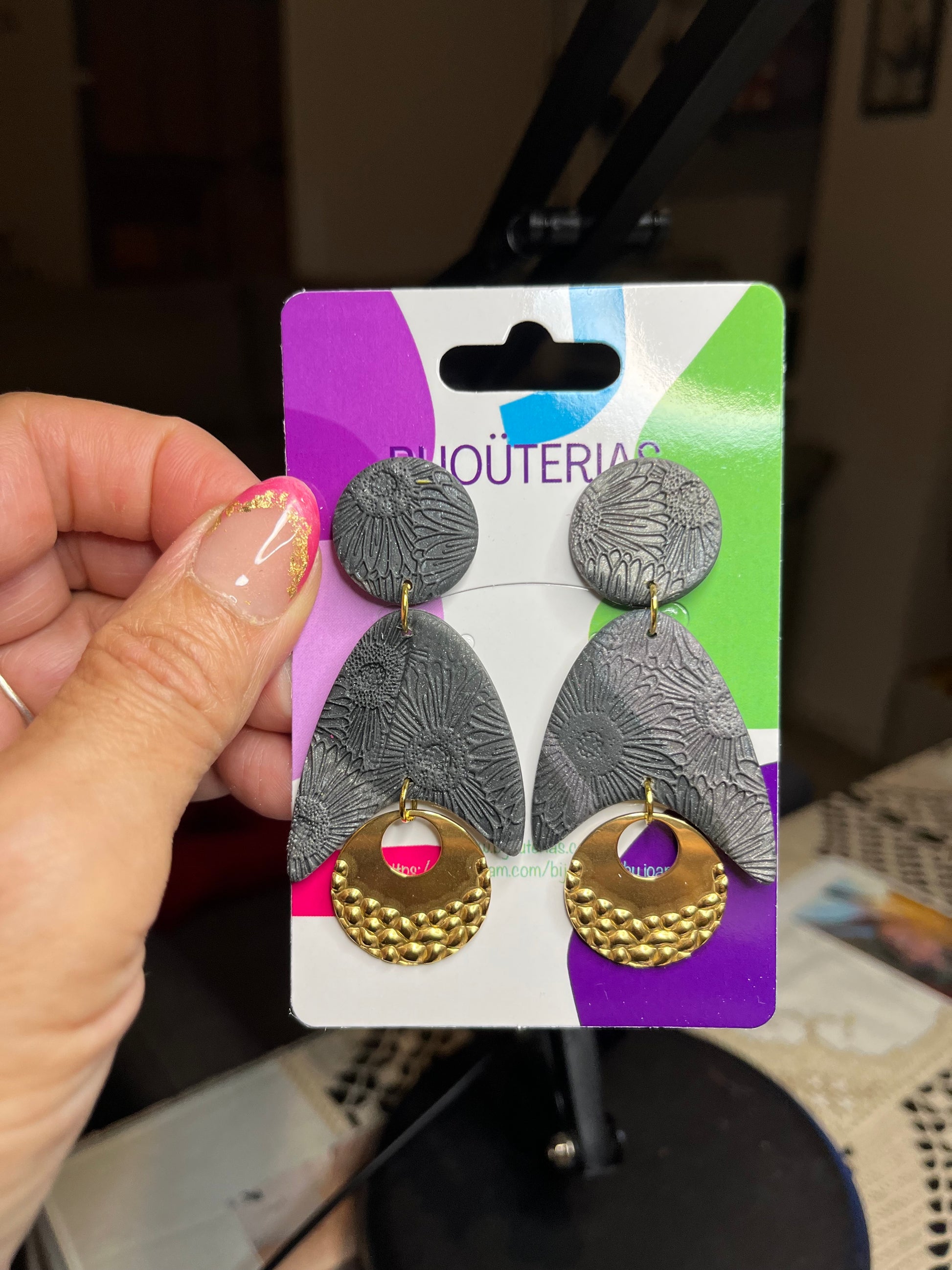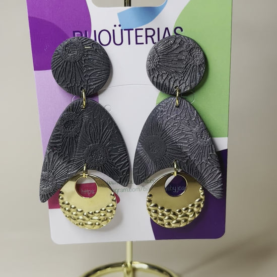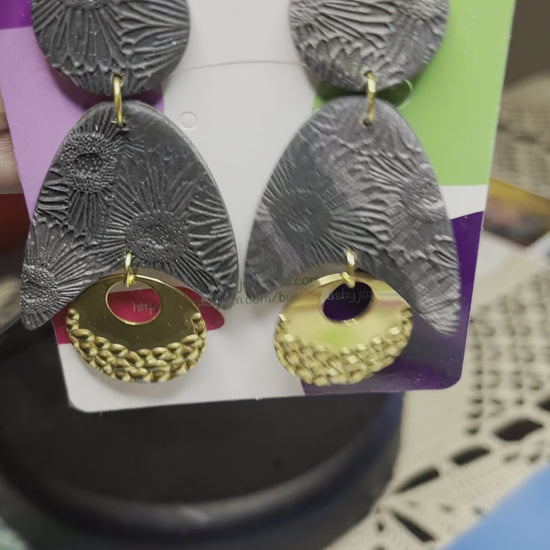 Con dos tonalidades de gris - gris oscuro y gris más claro metalizado - y preciosas texturas en la arcilla polimérica los hacen originales. Tienen un tamaño de 7,5x3,5 cm.