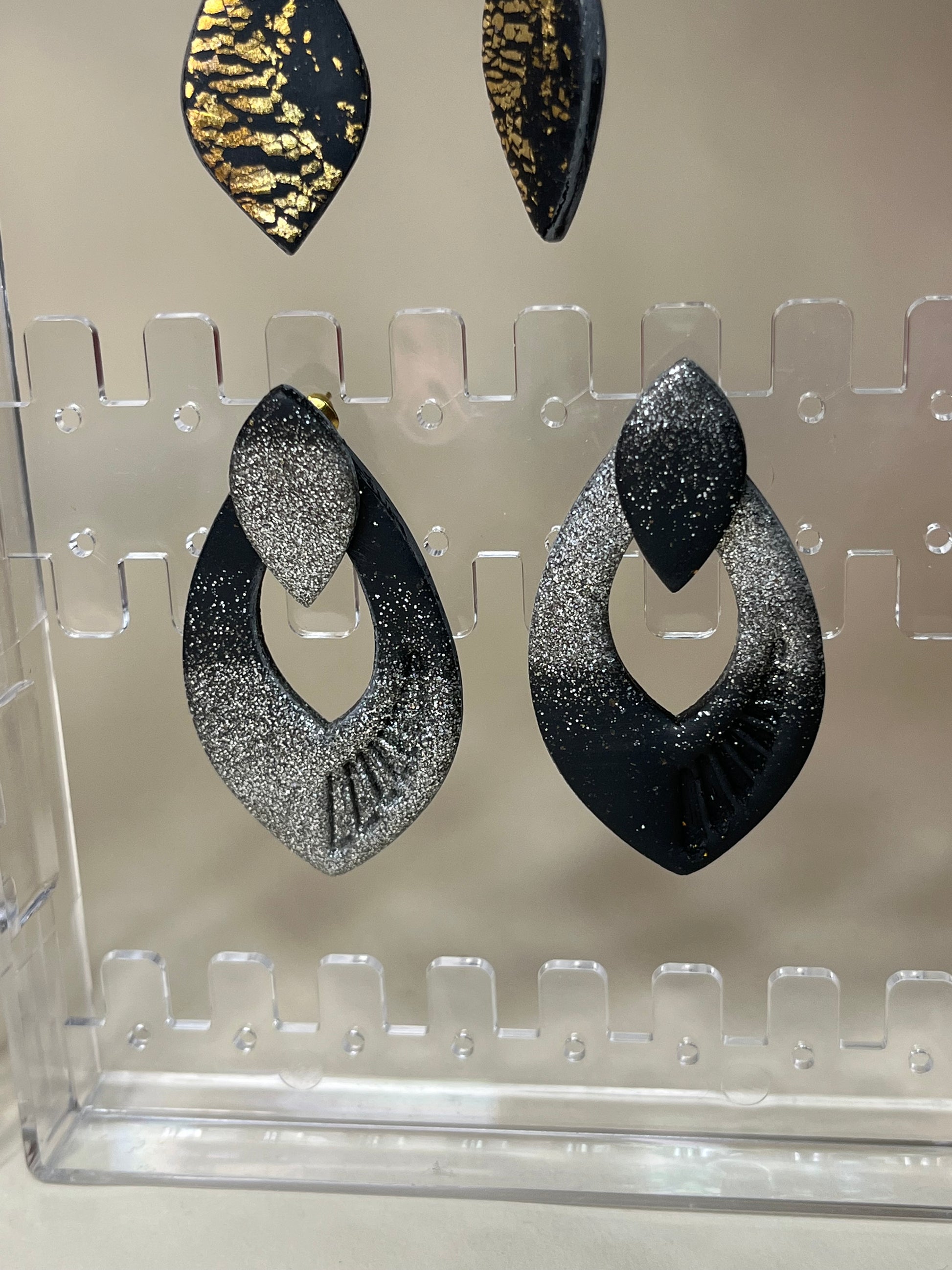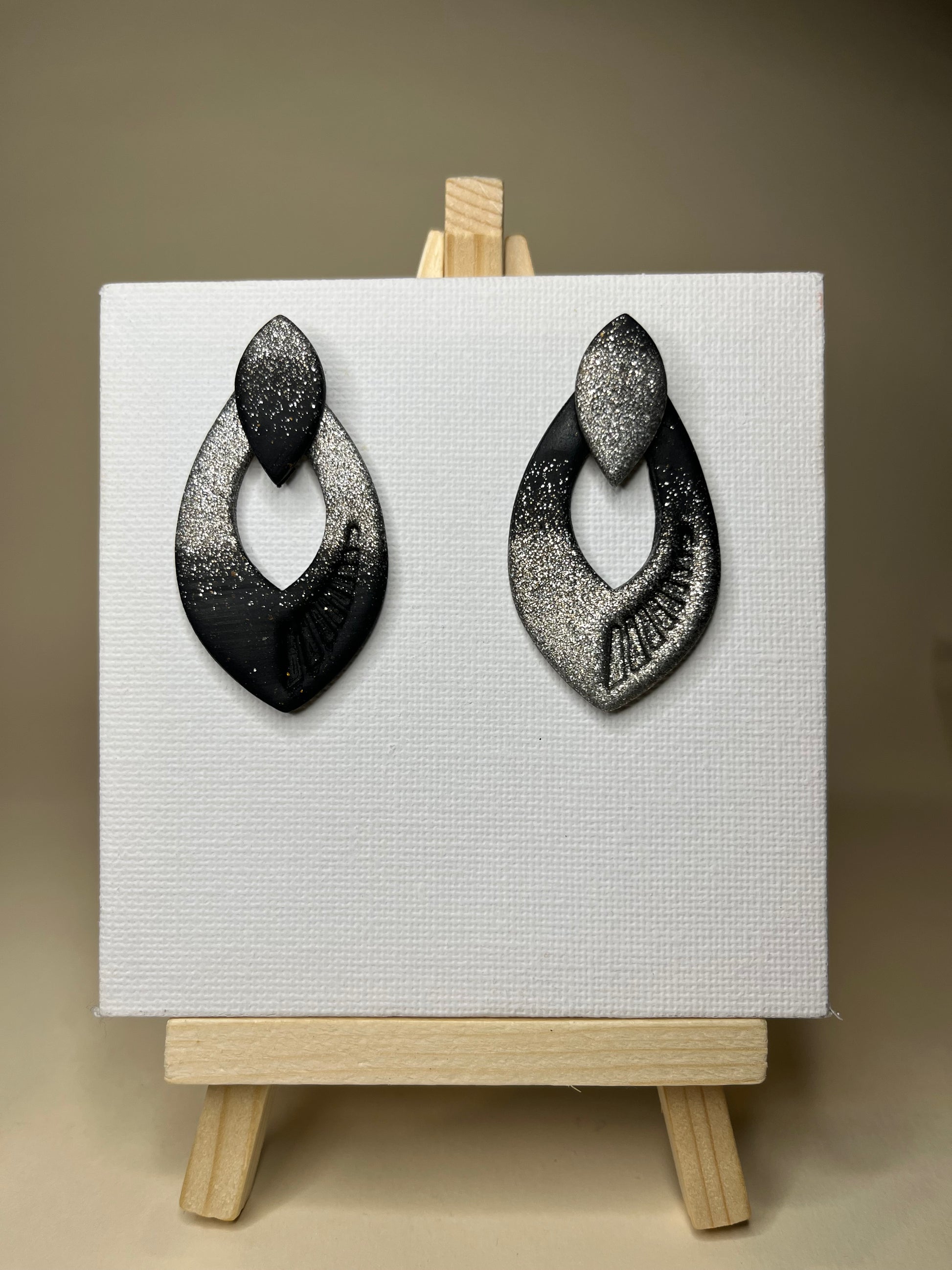 Estos elegantes pendientes hechos a mano fusionan la sofisticación del acero inoxidable en negro con toques de plata en arcilla polimérica, creando una pieza única y atemporal. Su diseño artesanal los convierte en el accesorio perfecto para las festividades navideñas, cenas de empresa o cualquier ocasión especial. Confeccionados con dedicación y esmero, estos pendientes son más que un complemento; son una expresión de amor y estilo que te hará destacar en cualquier evento.