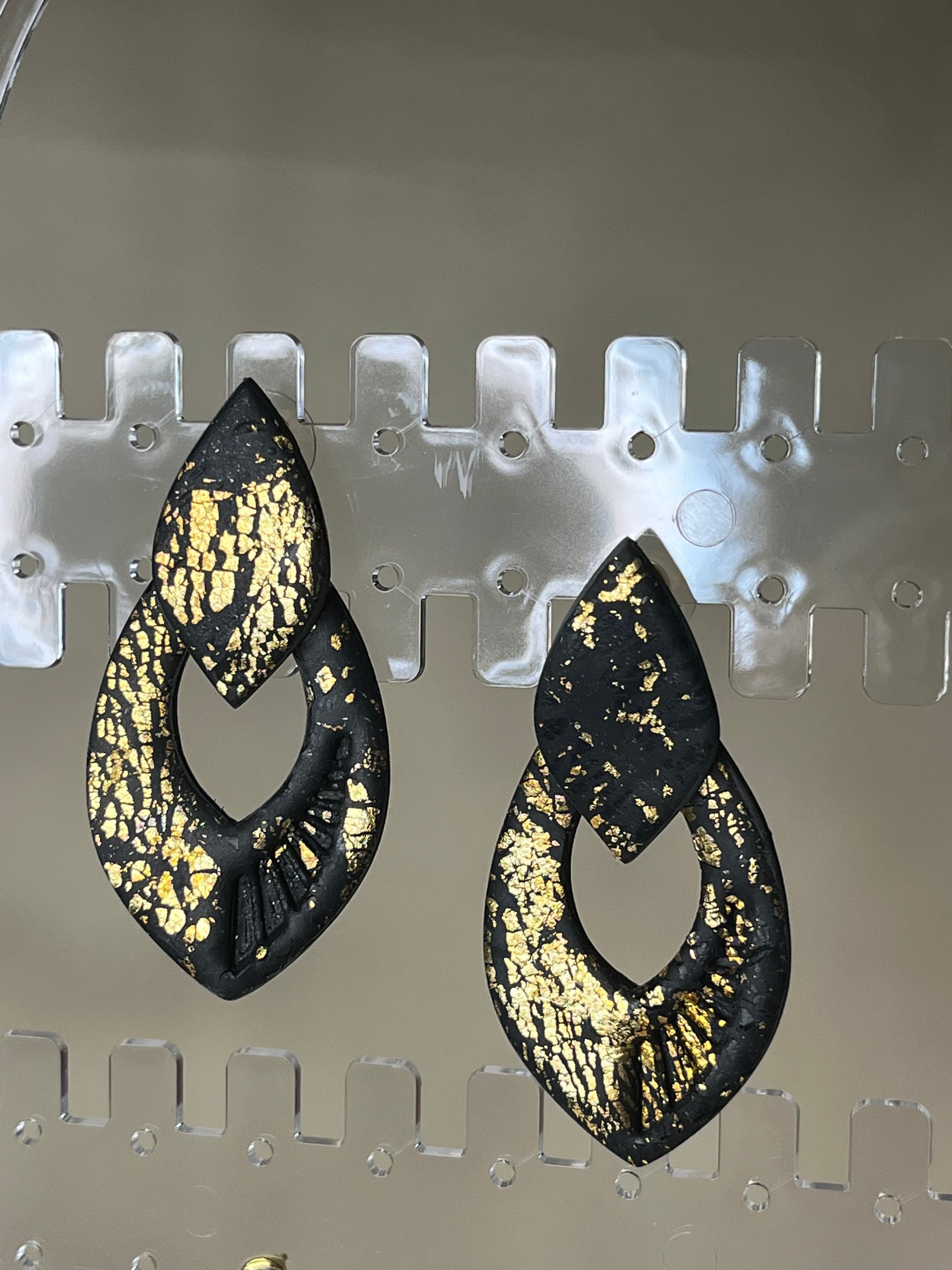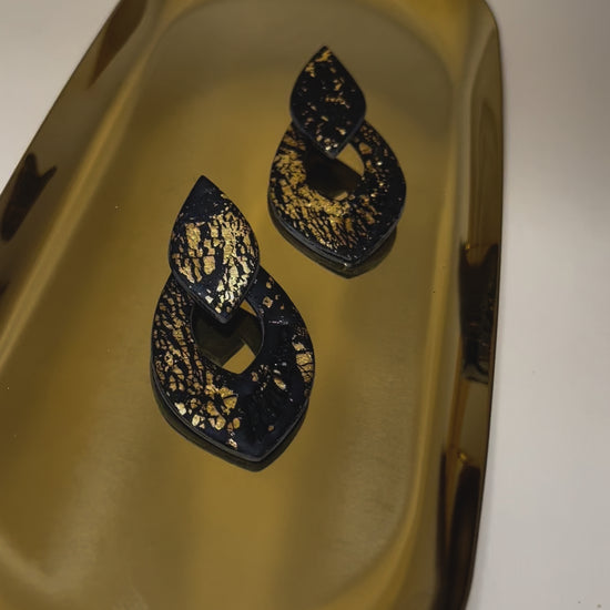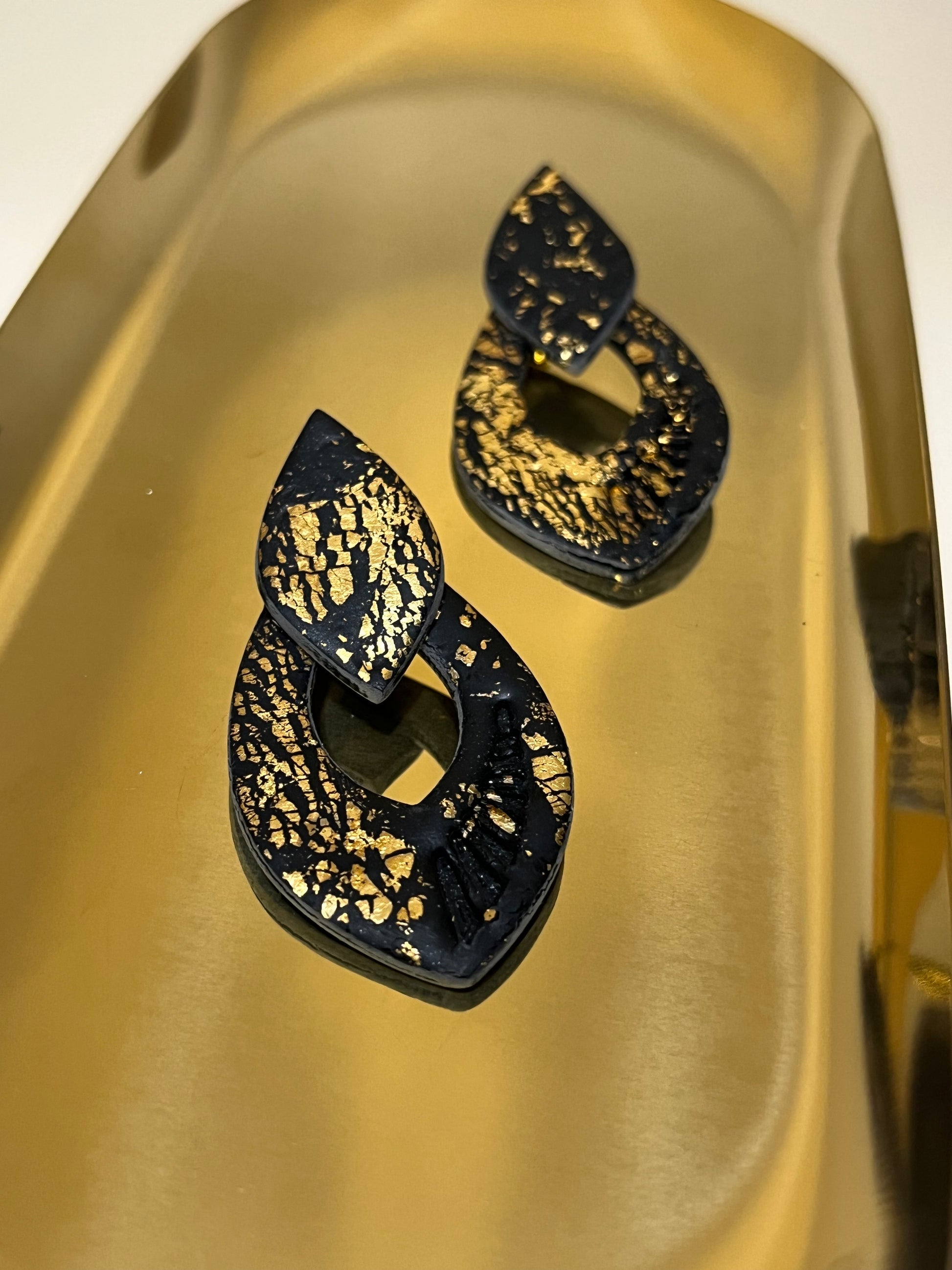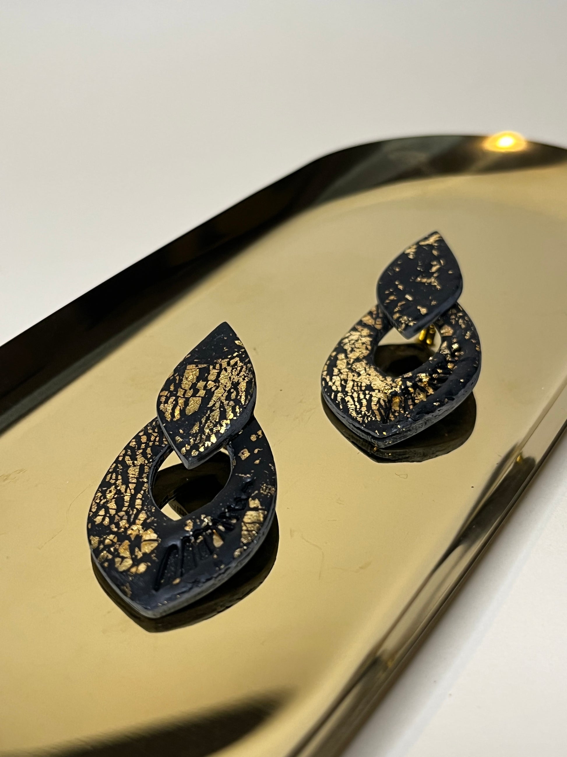 Estos elegantes pendientes hechos a mano fusionan la sofisticación del acero inoxidable en negro con toques de oro en arcilla polimérica, creando una pieza única y atemporal. Su diseño artesanal los convierte en el accesorio perfecto para las festividades navideñas, cenas de empresa o cualquier ocasión especial. Confeccionados con dedicación y esmero, estos pendientes son más que un complemento; son una expresión de amor y estilo que te hará destacar en cualquier evento.