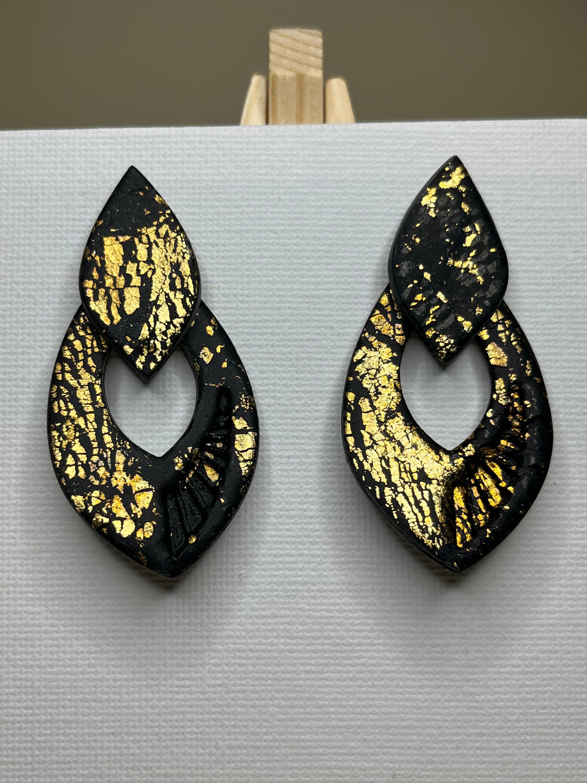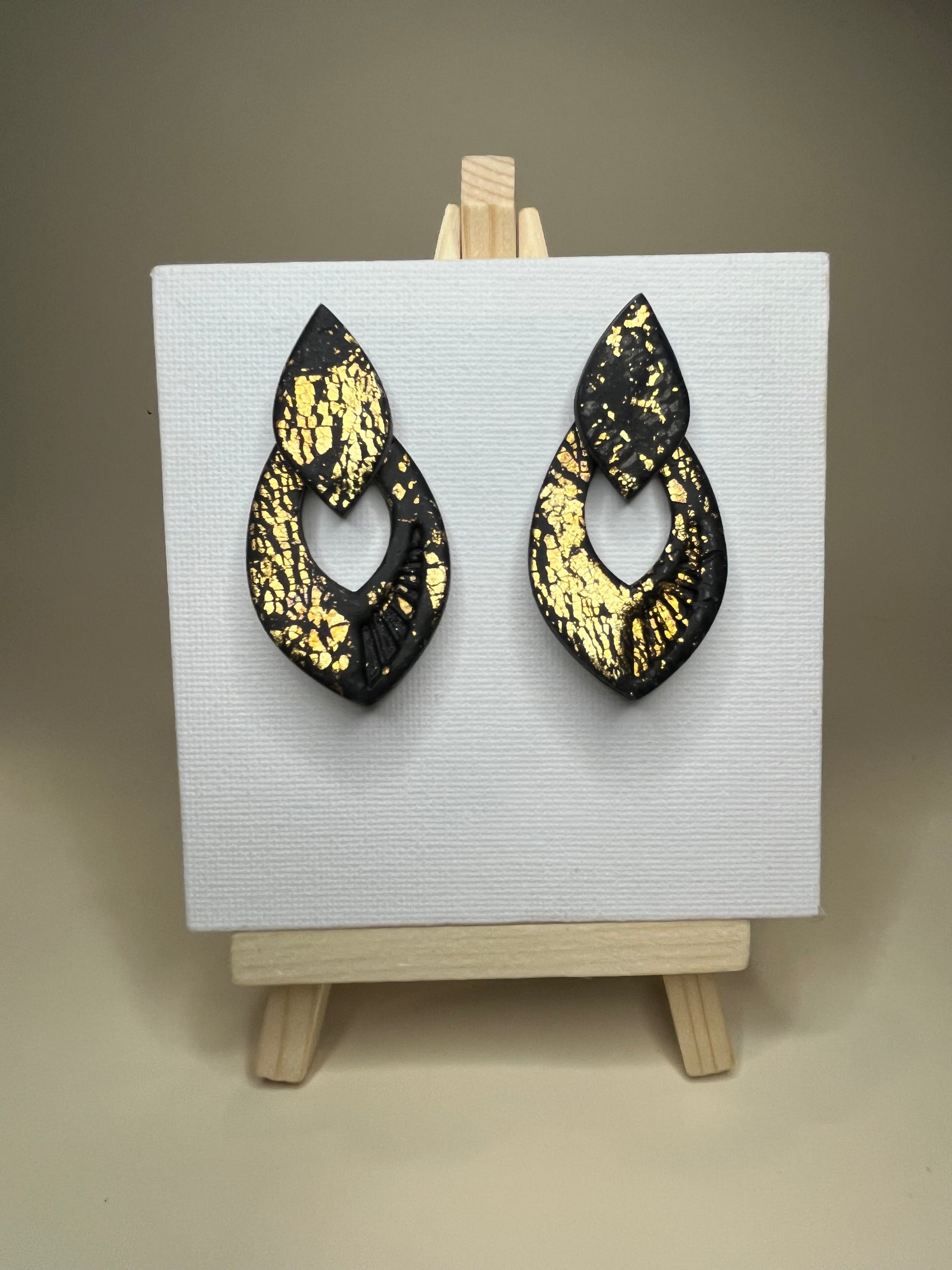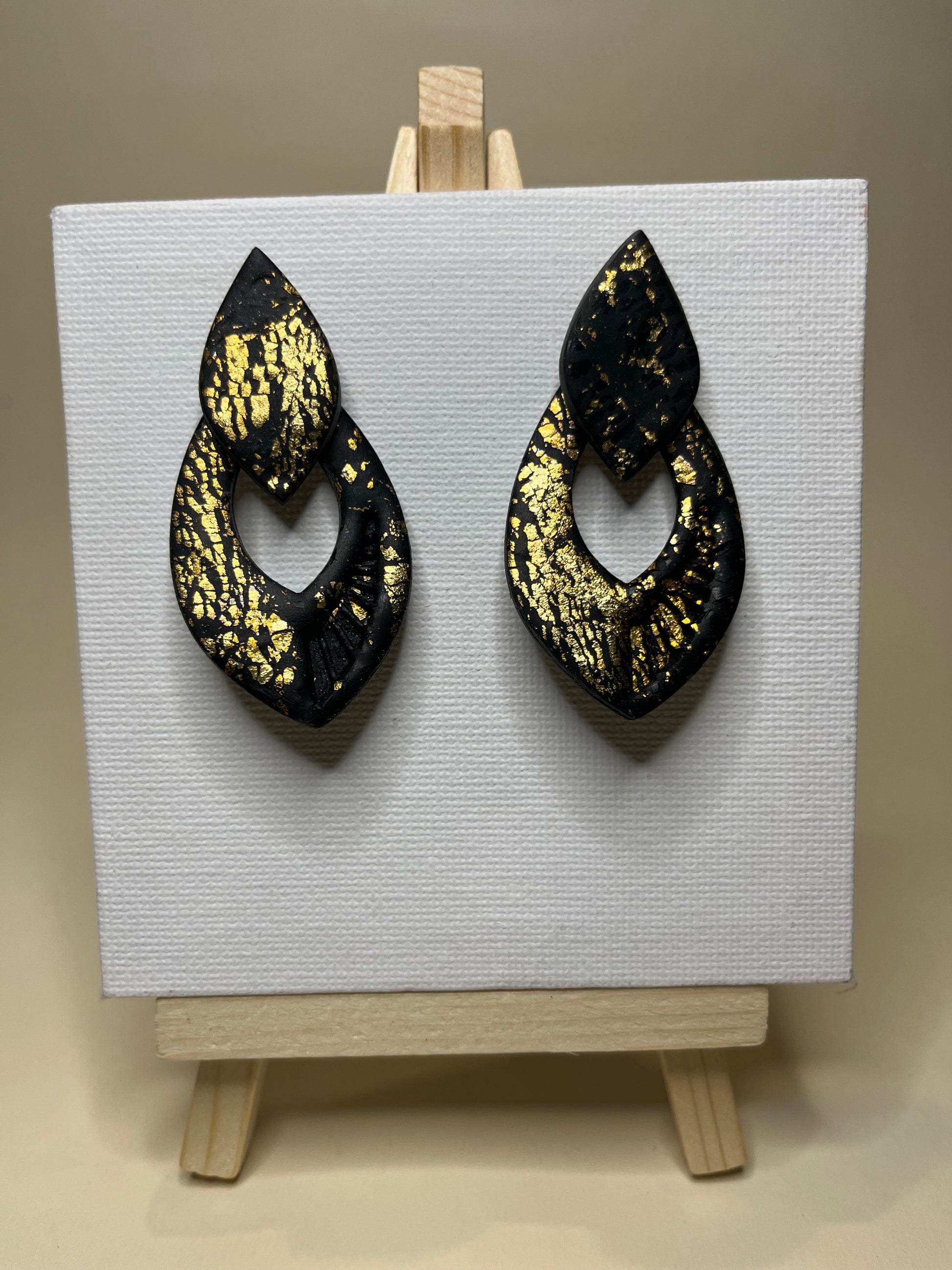 Estos elegantes pendientes hechos a mano fusionan la sofisticación del acero inoxidable en negro con toques de oro en arcilla polimérica, creando una pieza única y atemporal. Su diseño artesanal los convierte en el accesorio perfecto para las festividades navideñas, cenas de empresa o cualquier ocasión especial. Confeccionados con dedicación y esmero, estos pendientes son más que un complemento; son una expresión de amor y estilo que te hará destacar en cualquier evento.