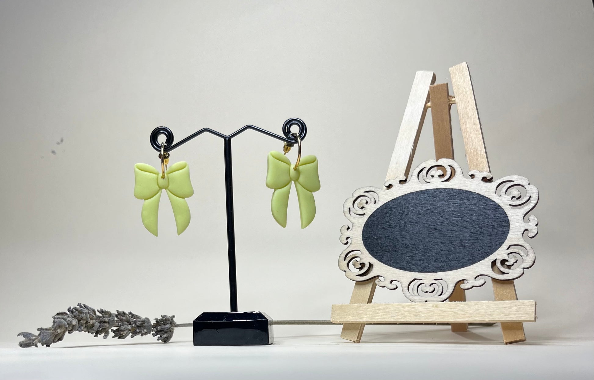 Pendientes hechos de arcilla polimérica y acero inoxidable.